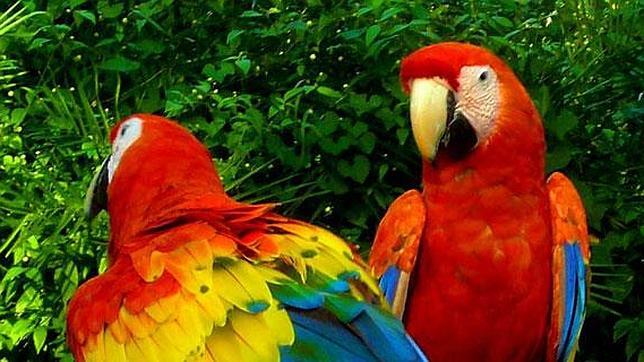 Los guacamayos o guacamayas (Ara spp.) son un género de aves de la familia de los loros (Psittacidae), del orden de los Psittaciformes. Comprende 16 especies (nueve de ellas extintas) de origen americano que habitan desde las selvas de Méxicohasta el noreste de Argentina, aproximadamente. Se alimentan de insectos y bayas y viven en los árboles.
